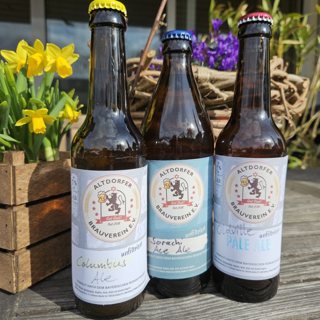 Endlich wieder Oldville Pale Ale mit Altdorfer Hopfen und Saphir. Dazu Versuche mit der Hopfensorte Columbus und Sorachi Ace auch